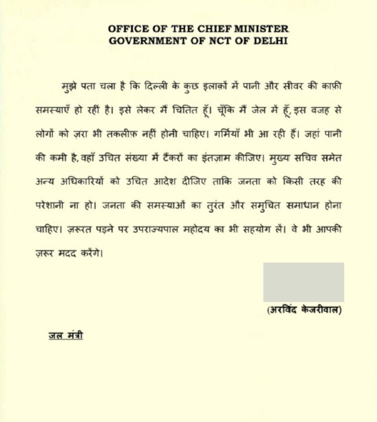 दिल्ली शराब घोटाले में प्रवर्तन निदेशालय (ED) के द्वारा गिरफ्तार किए गए मुख्यमंत्री अरविंद केजरीवाल का 'जेल से चलेगी सरकार' मोड शुरू हो चुका है. सूत्रों के मुताबिक अरविंद केजरीवाल ने ईडी की हिरासत में रहते हुए अपना पहला आदेश जारी किया है, जो जल मंत्रालय से जुड़ा हुआ है. दिल्ली सरकार में मंत्री आतिशी को ऑर्डर का नोटिस भेजा गया है. जंल मंत्री आतिशी आज यानी रविवार को 10 बजे प्रेस कॉन्फ्रेंस की.