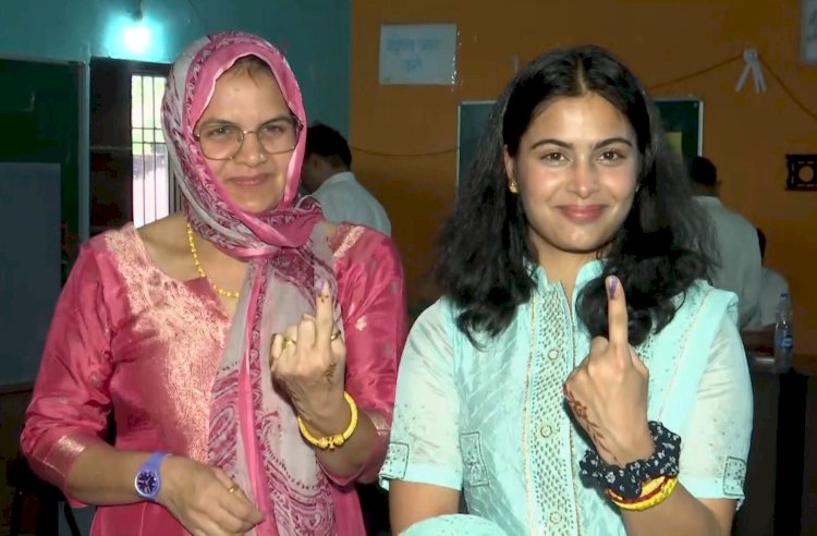 ओलंपियन मनु भाकर ने अपने परिवार सहित झज्जर के पोलिंग बूथ पर अपना वोट डाला