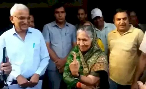 हिसार से निर्दलीय चुनाव मैदान में उतरीं सावित्री जिंदल ने अपना वोट डाला