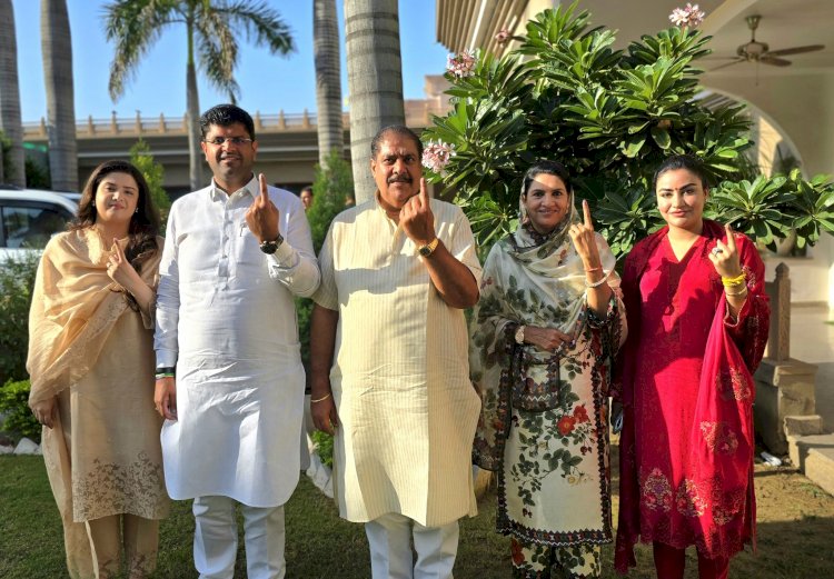 पूर्व डिप्टी सीएम दुष्यंत चौटाला ने अपने परिवार सहित विधानसभा चुनाव के लिए अपना वोट डाला
